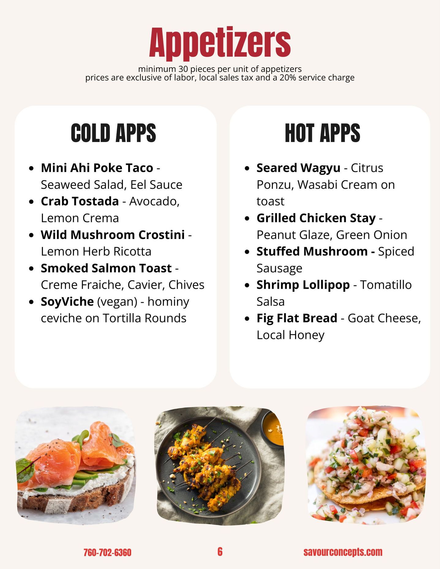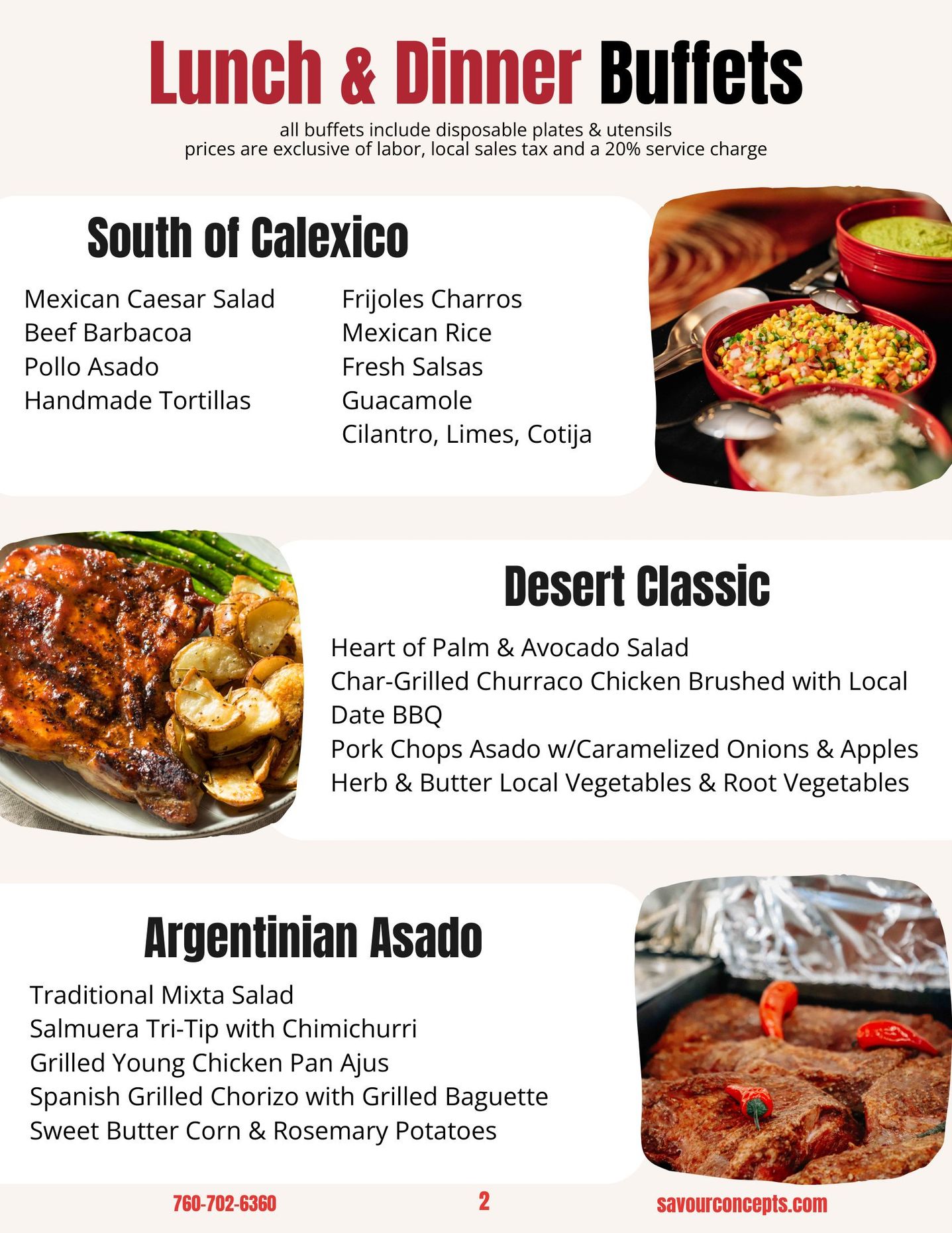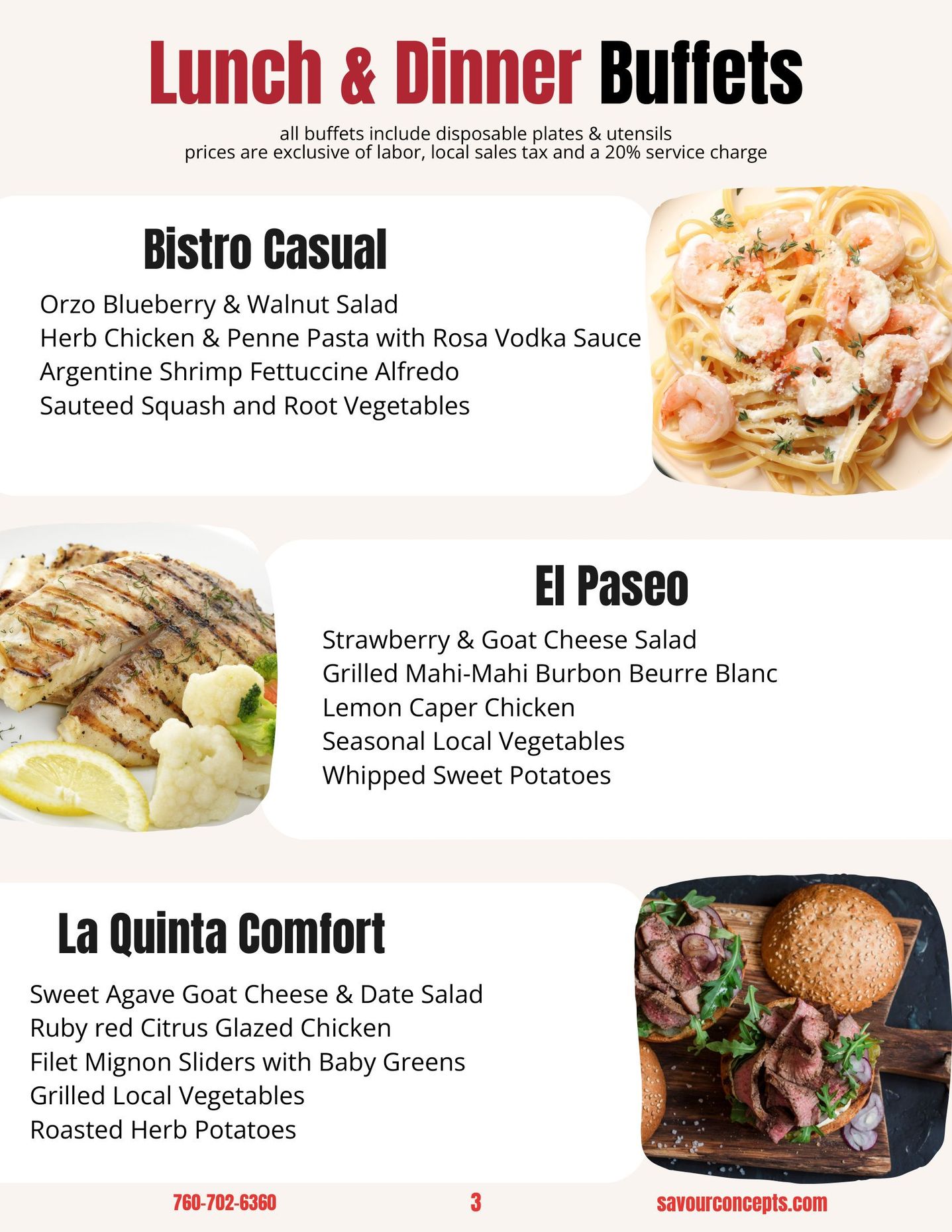 At Savour Concepts, we believe catering is more than just food—it’s about creating memorable moments. Whether you're hosting a laid-back backyard celebration or coordinating a large-scale event, our team brings passion, precision, and personality to every plate. From our versatile mobile kitchen to our fan-favorite food truck, we offer a unique blend of convenience and culinary excellence. With customizable menus, dietary accommodations, and a commitment to fresh, locally sourced ingredients, we take the guesswork out of planning and let you focus on enjoying your event. Our seasoned crew understands the demands of both private and public functions, which is why we prioritize punctuality, professionalism, and seamless service from setup to final clean-up. Every event is a new opportunity to exceed expectations, and we’re proud to bring our signature dishes and hospitality to gatherings across California. Whether you need full-scale event coordination or simply crave crowd-pleasing cuisine, Savour Concepts is ready to deliver an unforgettable catering experience. Reach out today for catering in La Quinta, CA.